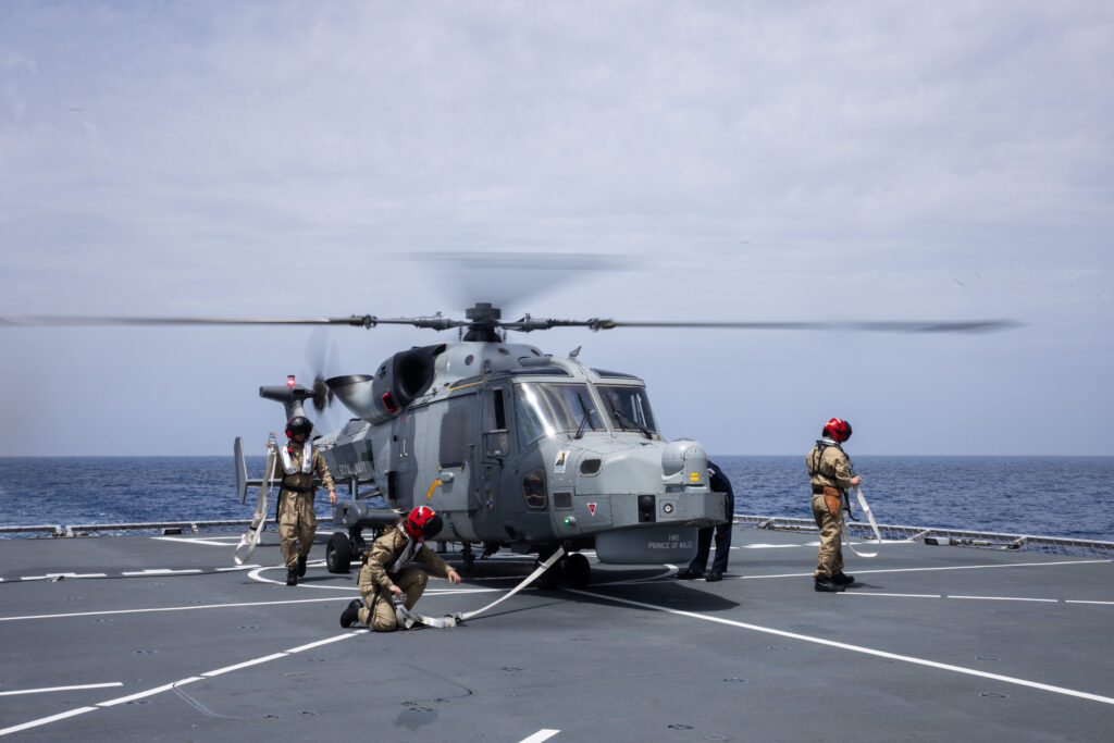 Während die Harpune noch am Gitter verankert ist, kann der Pilot starten. Der Pilot sorgt dann dafür, dass der Hubschrauber genügend Startkraft hat, um Spannung zwischen dem Hubschrauber und dem Landegitter zu erzeugen. Im letzten Moment trennt der Pilot die Harpune vom Heligrid, das vom Cockpit aus gesteuert wird. Dies ermöglicht es dem Piloten, sofort einen sicheren Abstand zum Schiff zu erreichen. Dies ist ein wichtiger Beitrag zur Sicherheit, insbesondere bei rauem Wetter.